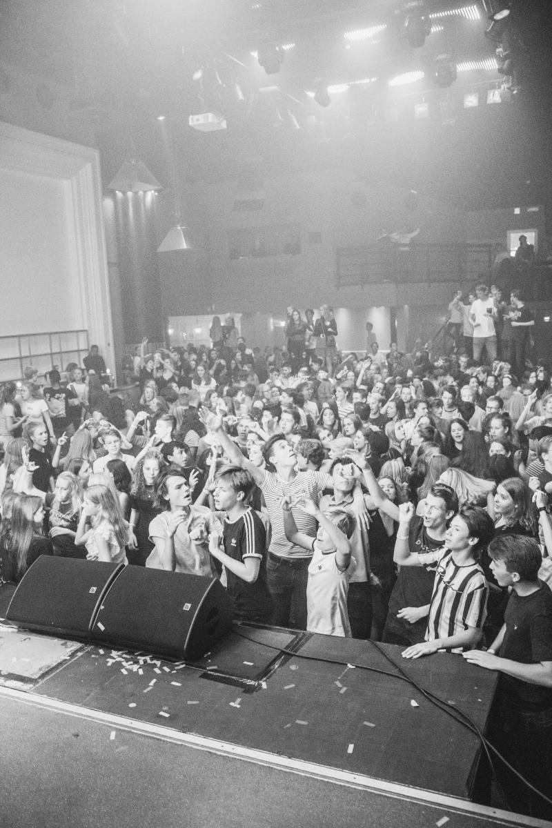 Je wordt maar één keer 100! En dat vierden we met een geweldig jubileumfeest op donderdag 26 september 2019 voor onze leerlingen waar Maan, Snelle en Freddy Moreira een optreden hebben gegeven! Naast genieten van de artiesten, de DJ’s en hun muziek in de verschillende studio’s, was er ook een ruimte (het café) voor die leerlingen die liever gezellig willen kletsen! Met bijna 2.000 leerlingen op het feest kijken we terug op een geweldige avond!