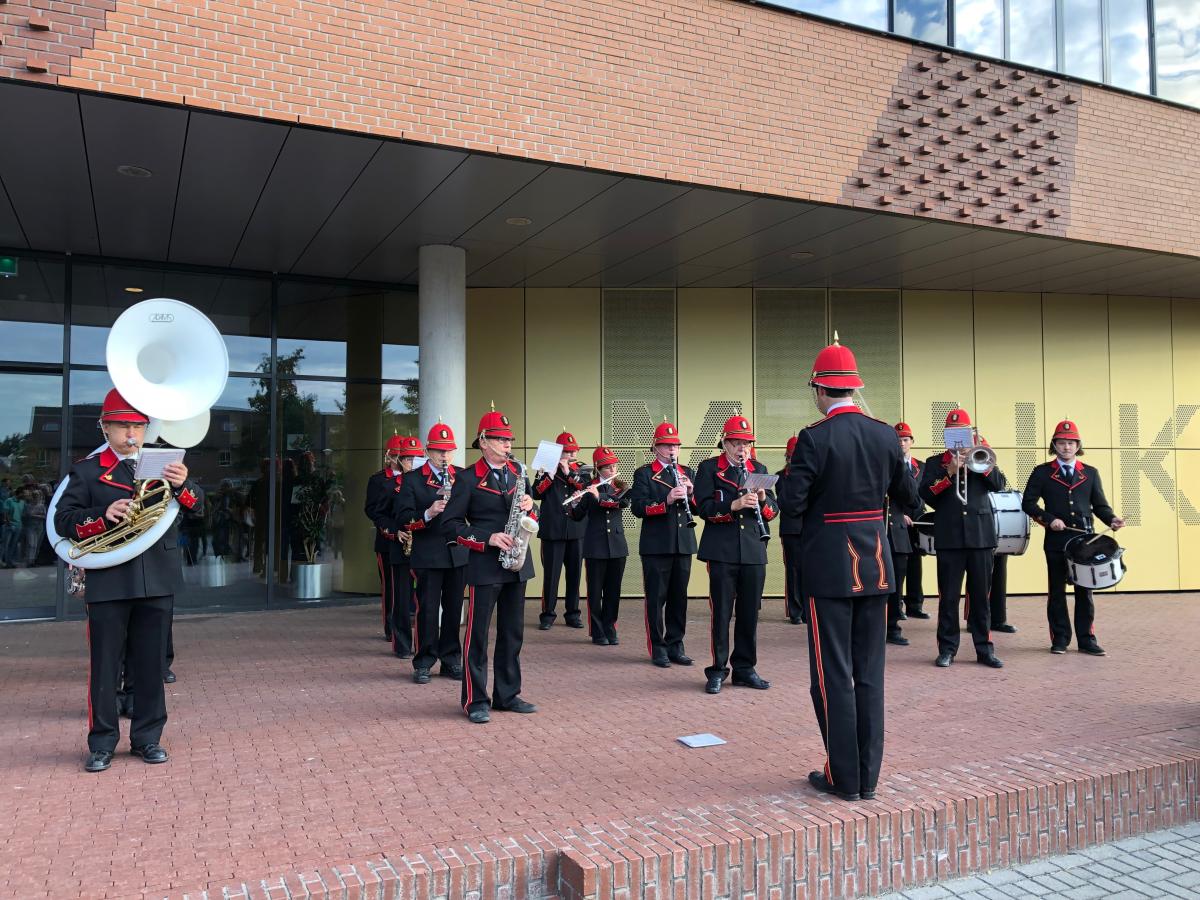 Op dé verjaardag van de school werden alle leerlingen en medewerkers ’s ochtends feestelijk onthaald door harmonie De Vriendschap.