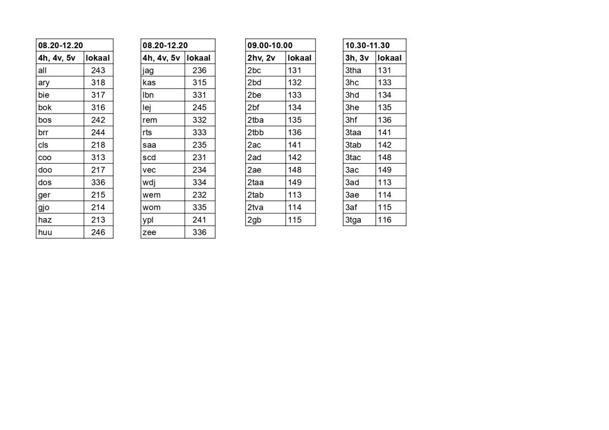 - Leerjaar 4 havo en 4 en 5 vwo: 08.20 -12.30 uur mentorles
