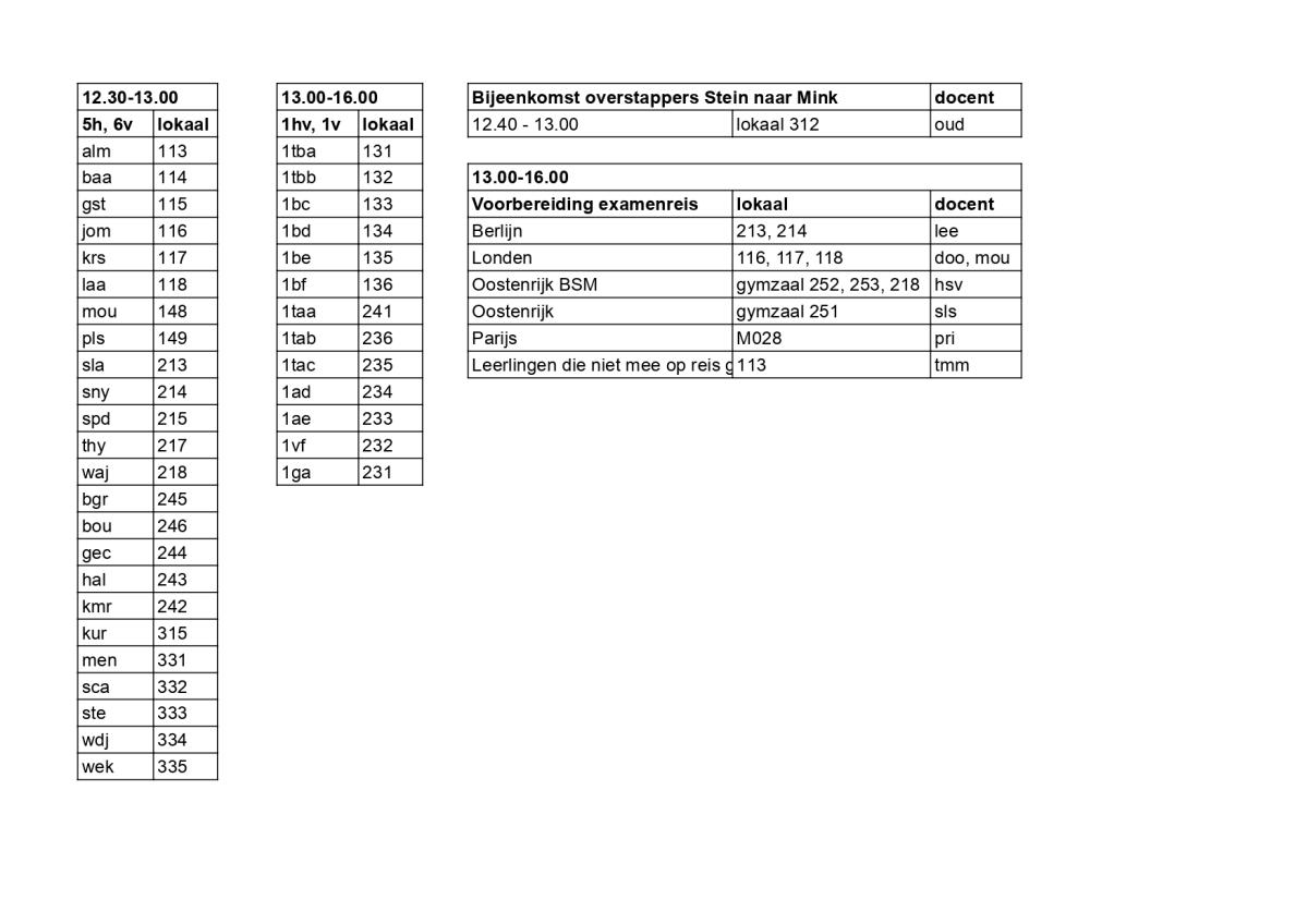- Leerjaar 6 atheneum/gymnasium: 12.30 - 13.00 uur mentorles