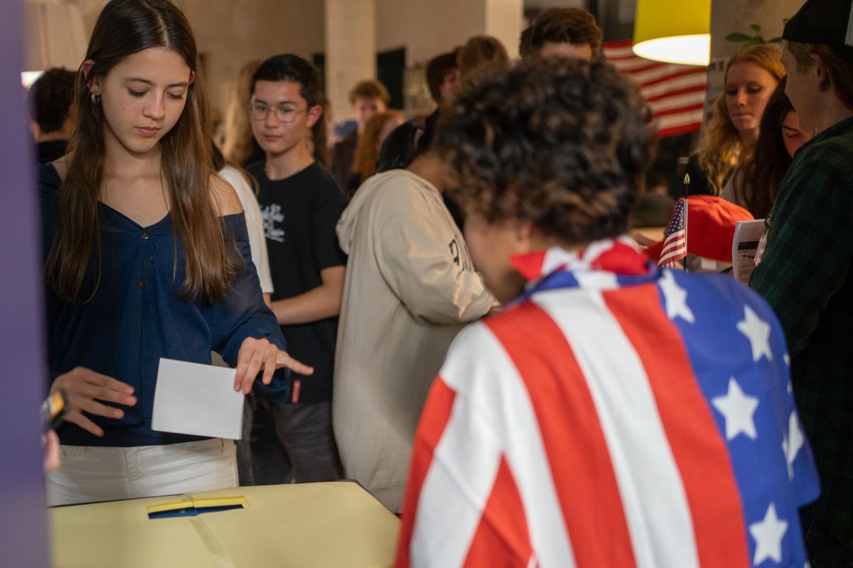 De exit polls in Amerika lieten gedurende de avond nogal op zich wachten maar de stemmentellers op het Minkema konden aan het einde van de avond de uitslag al wel delen: een overweldigende meerderheid koos voor Harris!